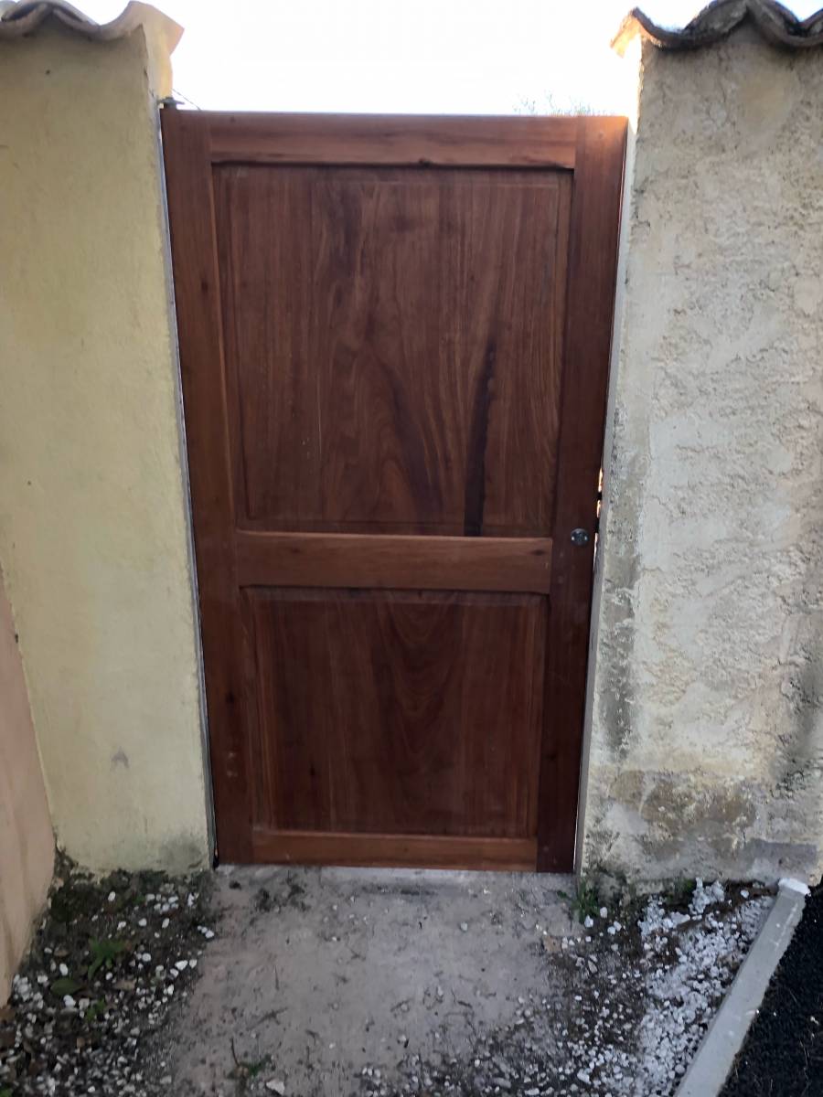 Fabrication et remplacement d'un portillon en style "chapeau de gendarme", bois exotique, par un portillon en Niangon bois exotique en coupe droite.