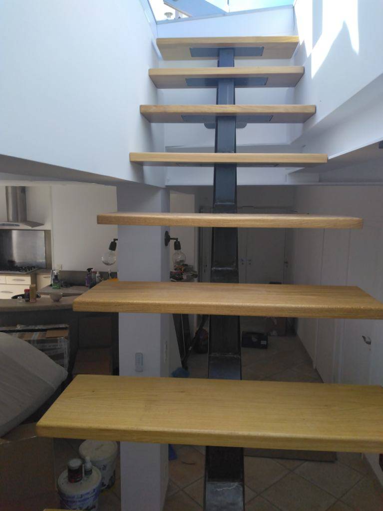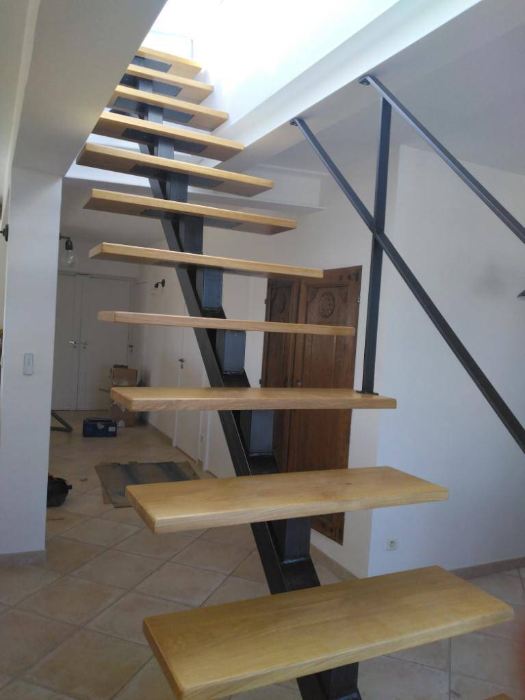 14 marches en chêne sur-mesure ont été découpées, poncées et vernis par nos soins dans notre atelier situé sur la commune de Greasque !